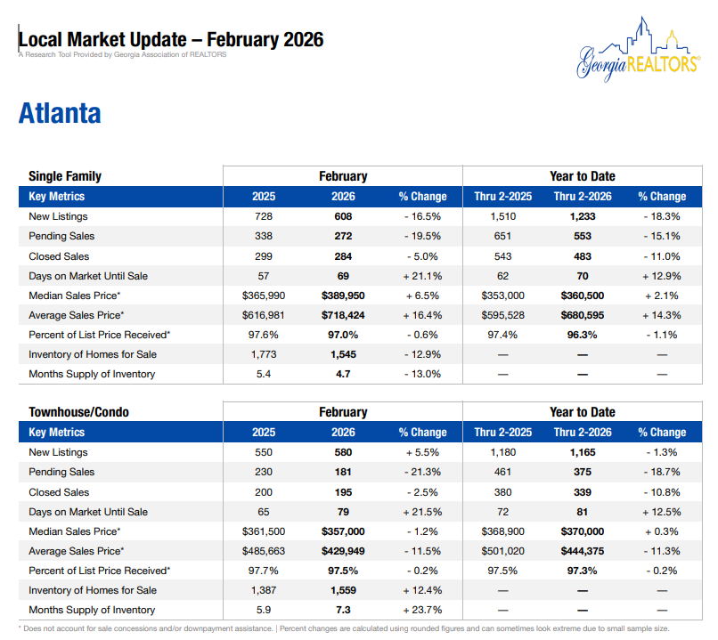 February 2026 METRO ATLANTA Snapshot “The best time to buy a home is always five years ago”-Ray Brown